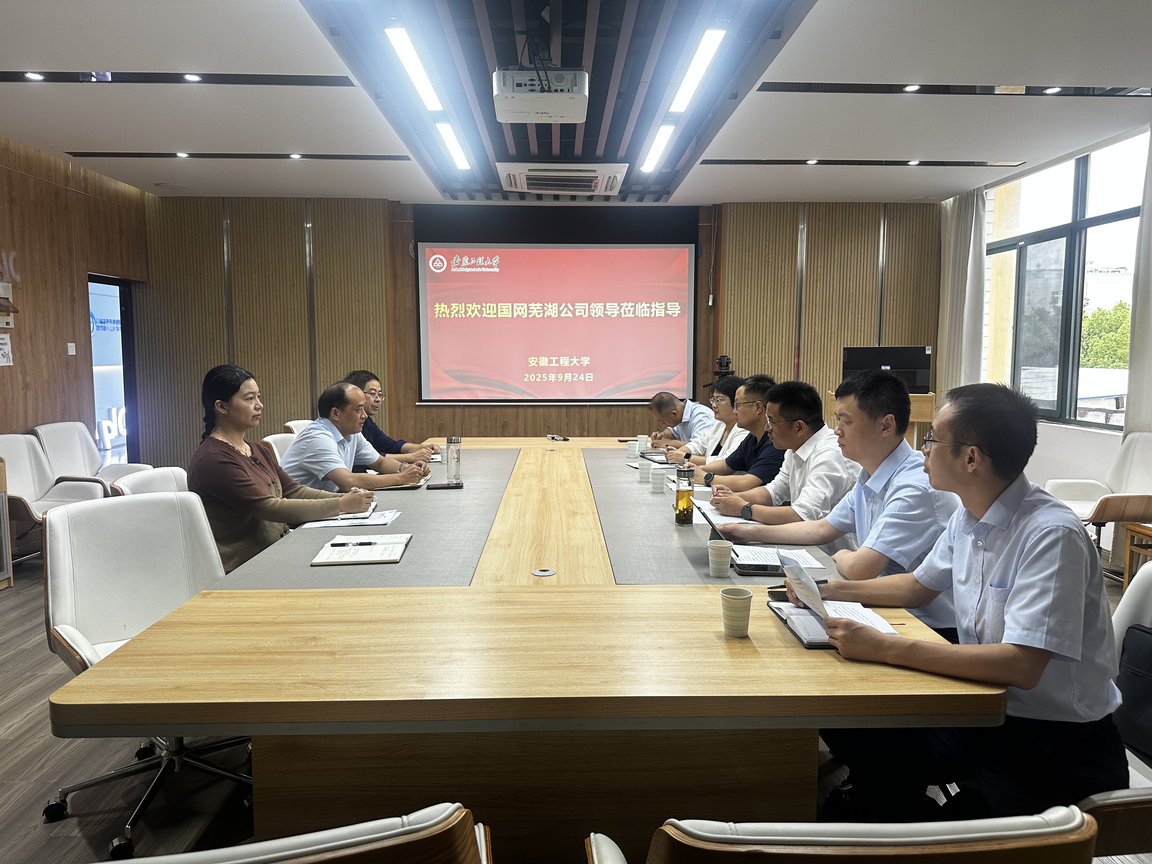 9月24日下午,国网芜湖供电公司副总经理张健率公司发展部、数科部、经研所、调控中心等部门负责人到教育部重点实验室就深入推进产学研合作开展交流座谈。实验室主任、太阳集团tyc9728院长葛愿,实验室副主任余诺和相关教师参加了座谈会。